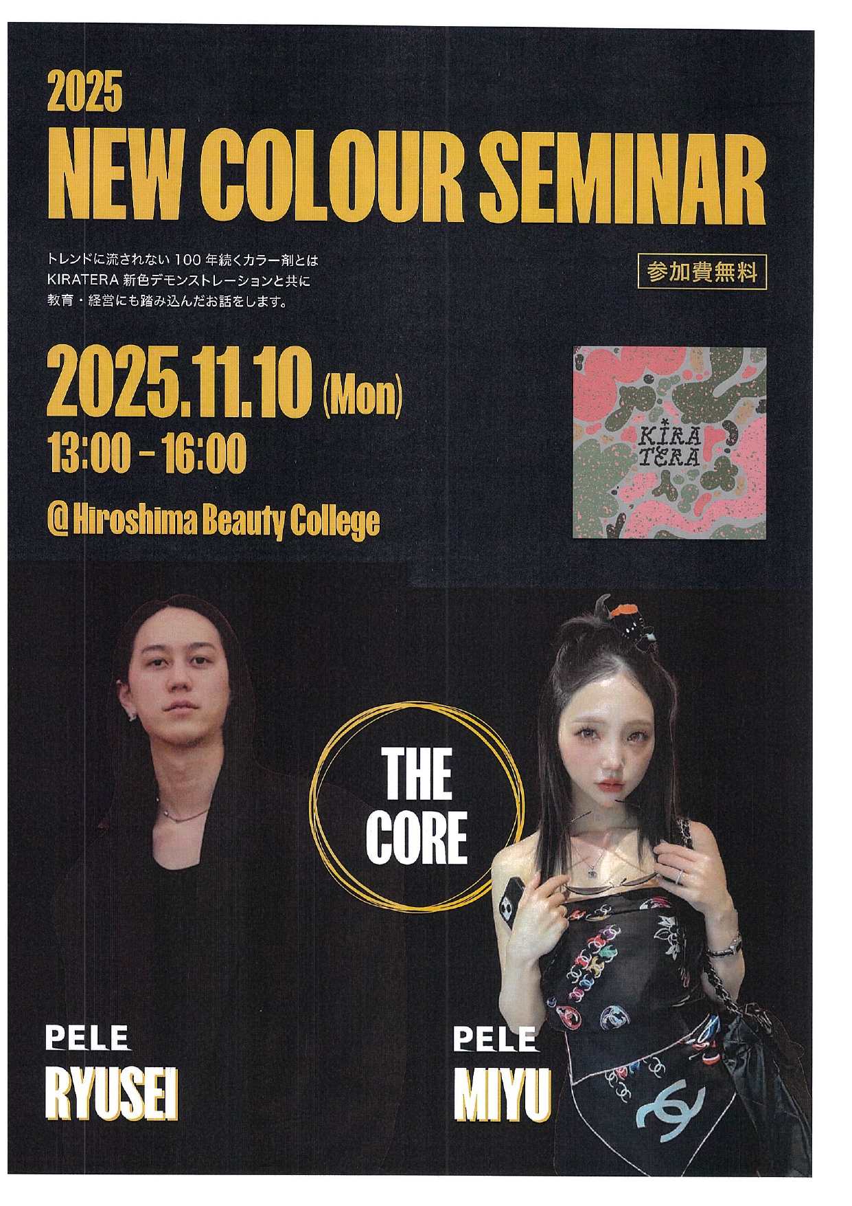 HOME EVENT & SEMINAR NEW COLOUR SEMINAR NEW COLOUR SEMINAR 日時 2025年11月10日(月) 主催 b-ex 場所 広島美容専門学校 時間 13:00~16:00 講師 PELE:RYUSEI・MIYU 料金 無料 PDF資料 ダウンロード このイベントに申し込む murakmi 10月度セミナー MY COLOR CODE